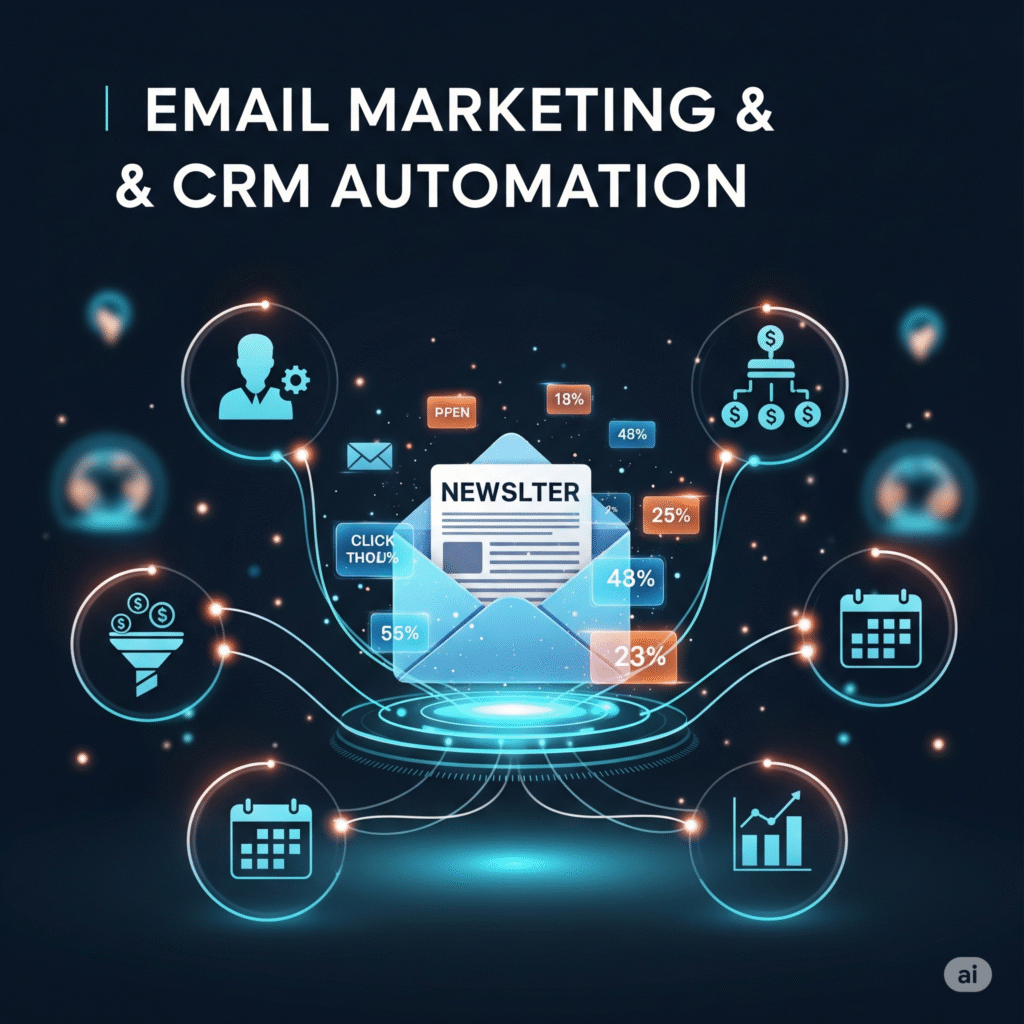 Segmentation, drip flows, cart recovery, newsletters, deliverability optimization.